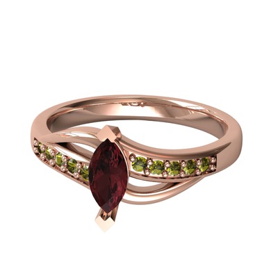 Kök yakut ve peridot 8 ayar rose altın yüzük