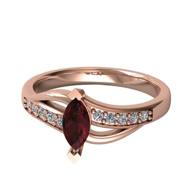 Kök yakut ve pırlanta 925 ayar rose altın kaplama gümüş yüzük (0.15 karat)