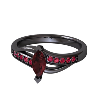 Kök yakut ve rodolit garnet 925 ayar siyah rodyum kaplama gümüş yüzük