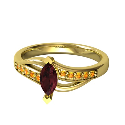 Kök yakut ve sitrin 14 ayar altın yüzük