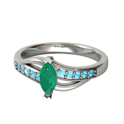 Kök zümrüt ve akuamarin 8 ayar beyaz altın yüzük