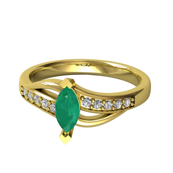 Kök zümrüt ve beyaz zirkon 925 ayar altın kaplama gümüş yüzük