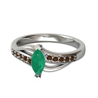 Kök zümrüt ve dumanlı kuvars 18 ayar beyaz altın yüzük