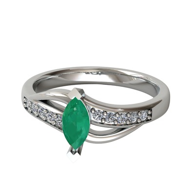 Kök zümrüt ve pırlanta 14 ayar beyaz altın yüzük (0.15 karat)