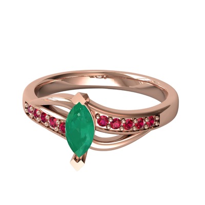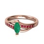 Kök zümrüt ve rodolit garnet 14 ayar rose altın yüzük