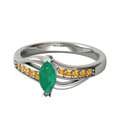 Kök zümrüt ve sitrin 8 ayar beyaz altın yüzük