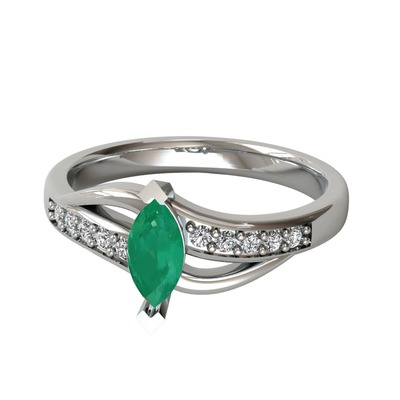 Kök zümrüt ve swarovski 14 ayar beyaz altın yüzük