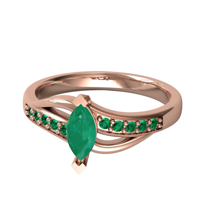 Kök zümrüt ve yeşil kuvars 925 ayar rose altın kaplama gümüş yüzük