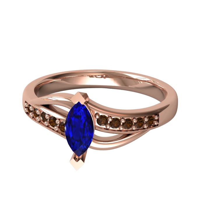 Lab safir ve dumanlı kuvars 8 ayar rose altın yüzük
