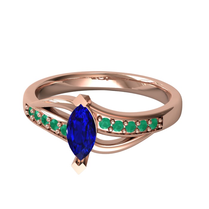 Lab safir ve kök zümrüt 18 ayar rose altın yüzük