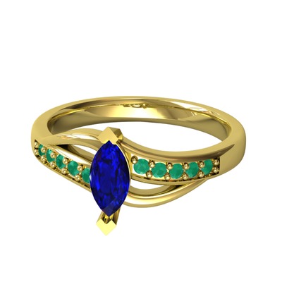 Lab safir ve kök zümrüt 8 ayar altın yüzük