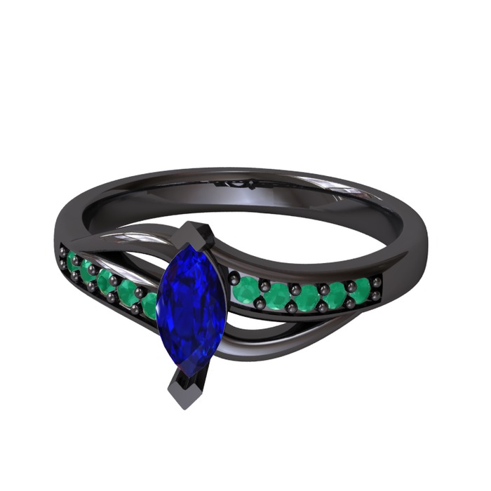 Lab safir ve kök zümrüt 925 ayar siyah rodyum kaplama gümüş yüzük