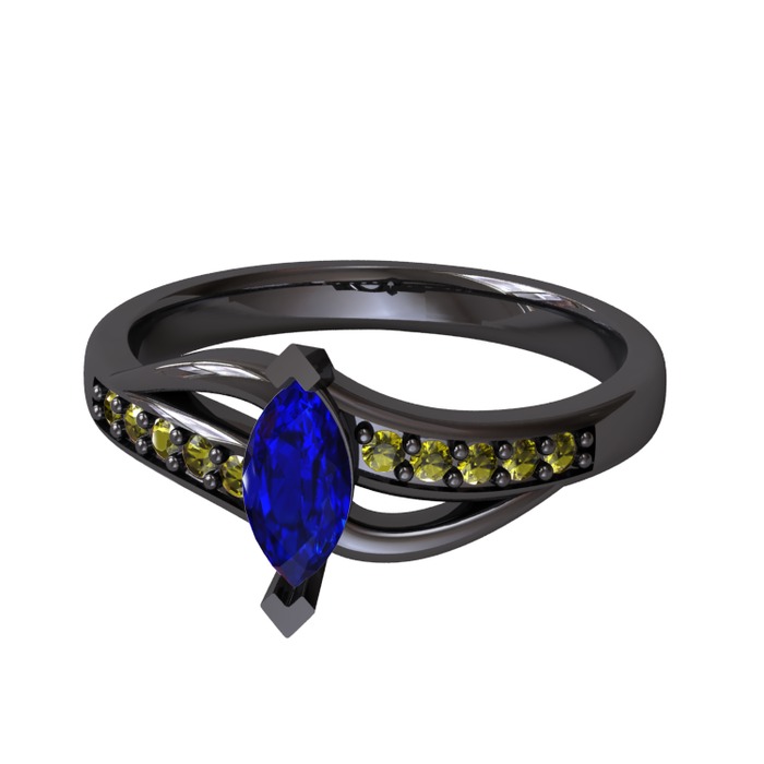 Lab safir ve peridot 925 ayar siyah rodyum kaplama gümüş yüzük