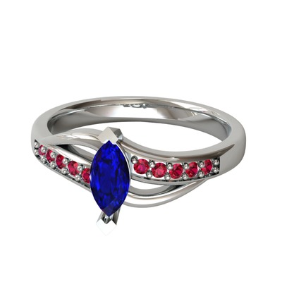 Lab safir ve rodolit garnet 8 ayar beyaz altın yüzük