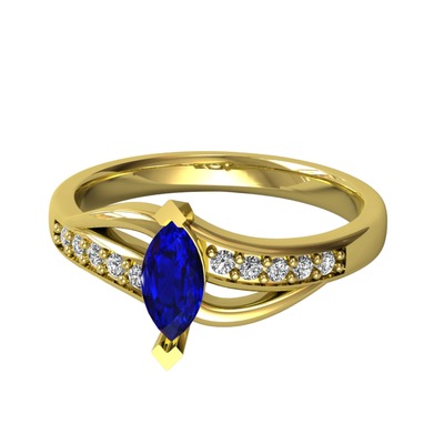 Lab safir ve swarovski 925 ayar altın kaplama gümüş yüzük