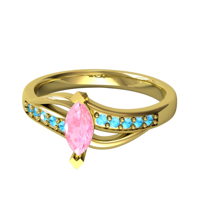 Pembe kuvars ve akuamarin 8 ayar altın yüzük