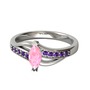 Pembe kuvars ve ametist 14 ayar beyaz altın yüzük