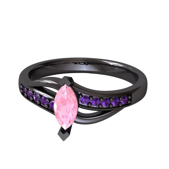 Pembe kuvars ve ametist 925 ayar siyah rodyum kaplama gümüş yüzük