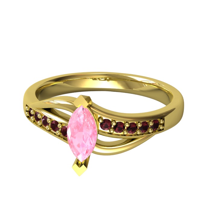 Pembe kuvars ve kök yakut 925 ayar altın kaplama gümüş yüzük
