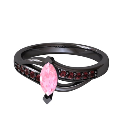 Pembe kuvars ve kök yakut 925 ayar siyah rodyum kaplama gümüş yüzük