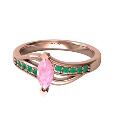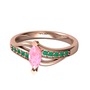 Pembe kuvars ve kök zümrüt 8 ayar rose altın yüzük