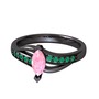 Pembe kuvars ve kök zümrüt 925 ayar siyah rodyum kaplama gümüş yüzük