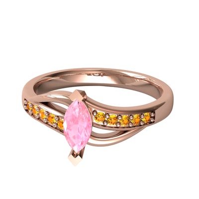 Pembe kuvars ve sitrin 8 ayar rose altın yüzük