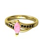 Pembe kuvars ve siyah zirkon 14 ayar altın yüzük