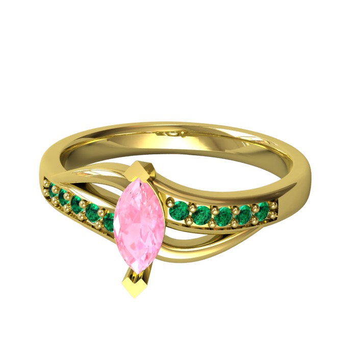 Pembe kuvars ve yeşil kuvars 8 ayar altın yüzük