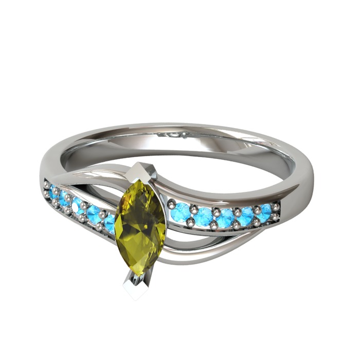 Peridot ve akuamarin 925 ayar gümüş yüzük