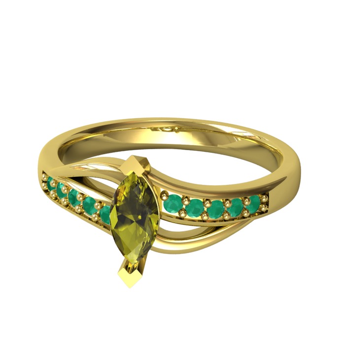 Peridot ve kök zümrüt 18 ayar altın yüzük