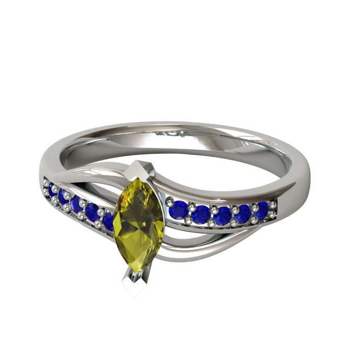 Peridot ve lab safir 14 ayar beyaz altın yüzük