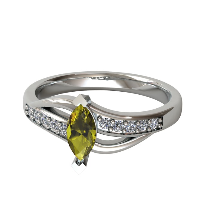 Peridot ve pırlanta 14 ayar beyaz altın yüzük (0.15 karat)