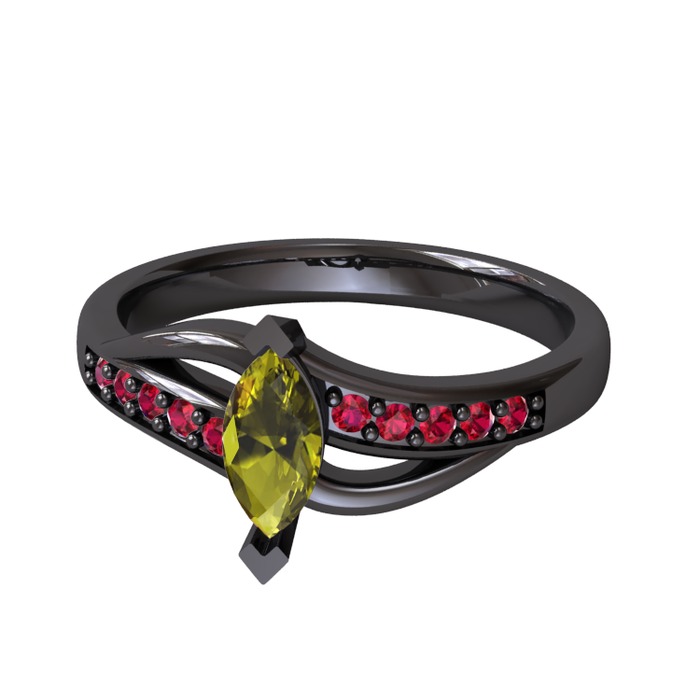 Peridot ve rodolit garnet 925 ayar siyah rodyum kaplama gümüş yüzük