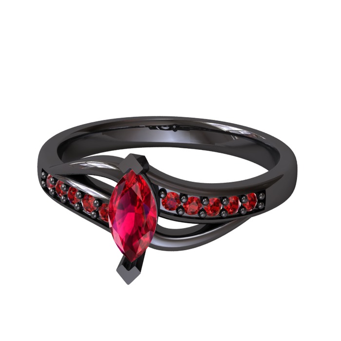 Rodolit garnet ve garnet 925 ayar siyah rodyum kaplama gümüş yüzük