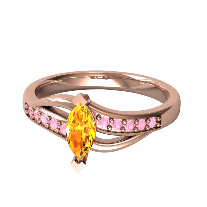 Sitrin ve pembe kuvars 8 ayar rose altın yüzük
