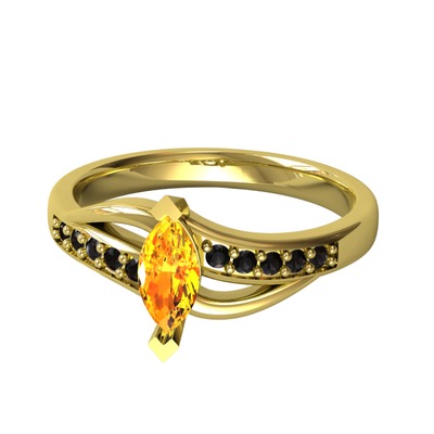 Sitrin ve siyah zirkon 14 ayar altın yüzük