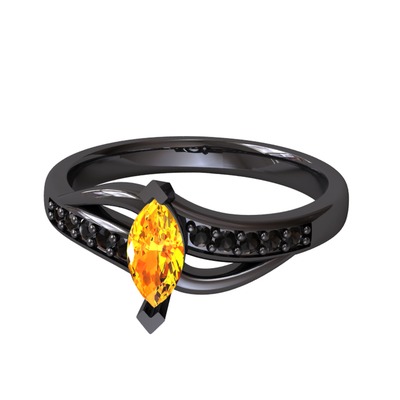 Sitrin ve siyah zirkon 925 ayar siyah rodyum kaplama gümüş yüzük