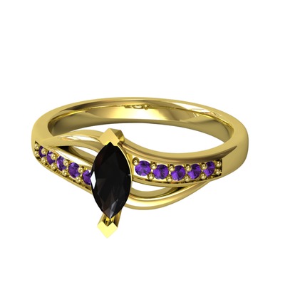 Siyah zirkon ve ametist 8 ayar altın yüzük