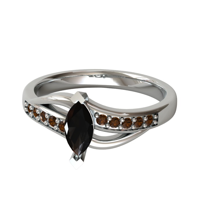 Siyah zirkon ve dumanlı kuvars 14 ayar beyaz altın yüzük