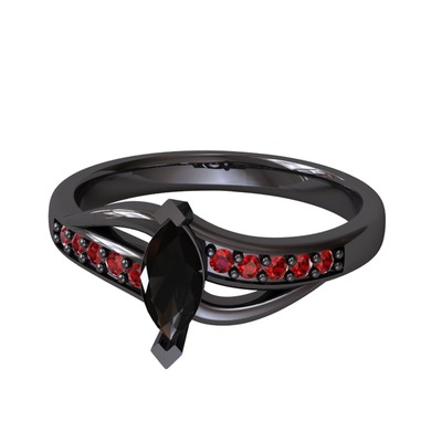 Siyah zirkon ve garnet 925 ayar siyah rodyum kaplama gümüş yüzük