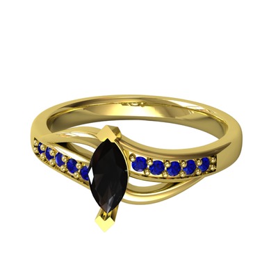 Siyah zirkon ve lab safir 925 ayar altın kaplama gümüş yüzük