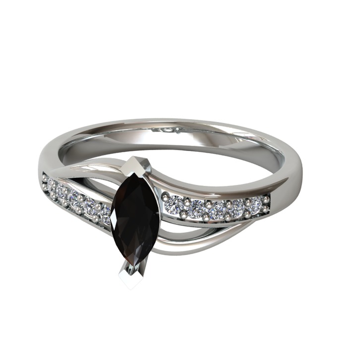 Siyah zirkon ve pırlanta 14 ayar beyaz altın yüzük (0.15 karat)