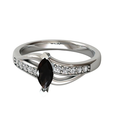 Siyah zirkon ve swarovski 8 ayar beyaz altın yüzük