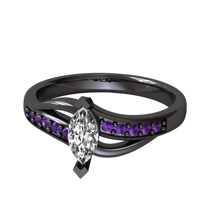 Swarovski ve ametist 925 ayar siyah rodyum kaplama gümüş yüzük