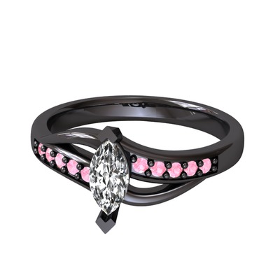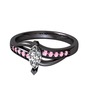 Swarovski ve pembe kuvars 925 ayar siyah rodyum kaplama gümüş yüzük