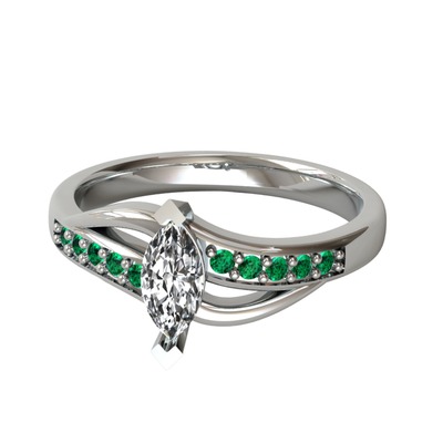 Swarovski ve yeşil kuvars 18 ayar beyaz altın yüzük
