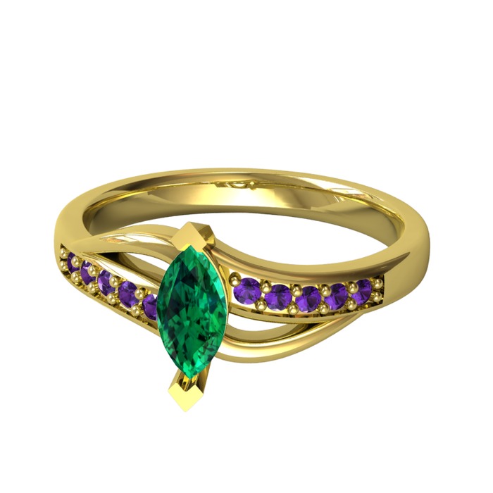 Yeşil kuvars ve ametist 925 ayar altın kaplama gümüş yüzük