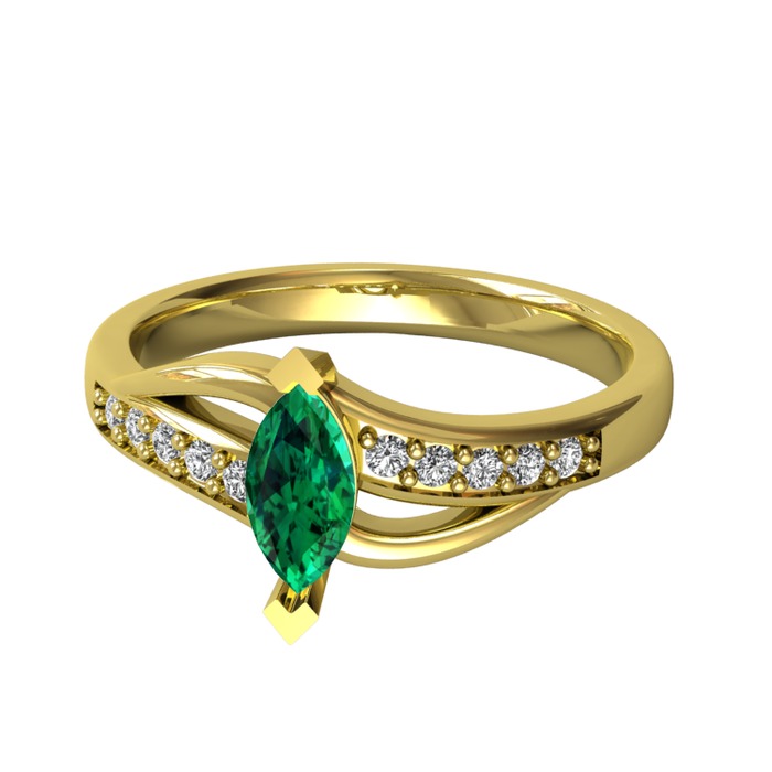 Yeşil kuvars ve beyaz zirkon 18 ayar altın yüzük