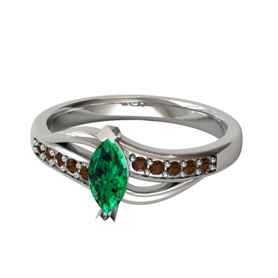 Yeşil kuvars ve dumanlı kuvars 14 ayar beyaz altın yüzük